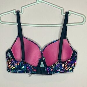 Victoria Secret Pink Wear everywhere Lightly lined underwire bra size 32A black with neon colors!