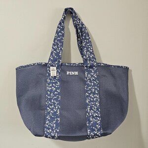 VICTORIA SECRET PINK MESH FLORAL TOTE BAG / Steel Blue / 11261635