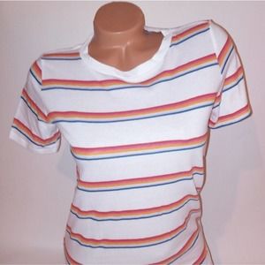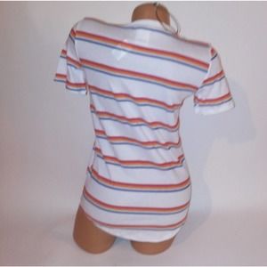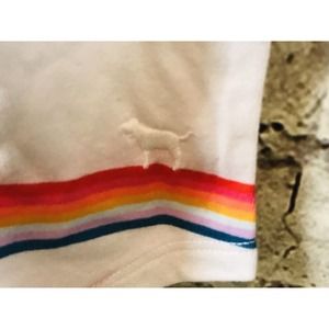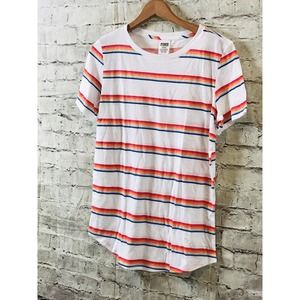 VICTORIA SECRET PINK Perfect Tee Crew T-Shirt STRIPED Dog Logo S SMALL NEW