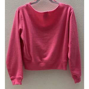 Spice up your wardrobe with this trendy Victoria's Secret Pink everyday cropped fleece sweatshirt. The boat neck and cold shoulder sleeves give it a unique and stylish touch. It is made of a comfortable cotton blend material and features the brand's logo as accents.