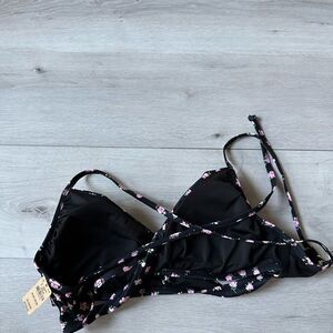 VICTORIA SECRET PINK BODY WRAP BIKINI TOP PURE BLACK FLORAL M NWT