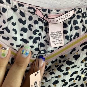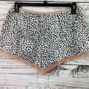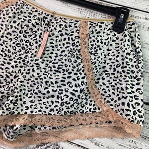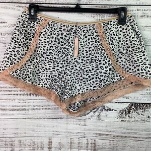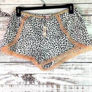 Victoria Secret brand, size L, new with tags, sleep shorts, animal leopard print, light pink, gold, black colors, lace trim. NWT.
