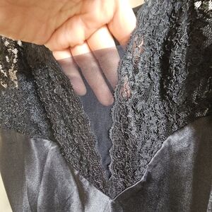 VINTAGE This elegant black lace slip dress offers a perfect blend of comfort and style. Ideal for intimate evenings or as luxurious sleepwear.