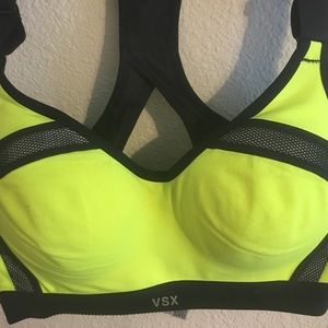 Super cute bright sport bra. Never worn! I love it but it is slightly too tight on me. New, no flaws.