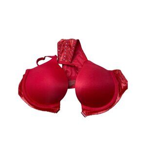 VICTORIA SECRET Very Sexy Push-Up 32A Bra Red Velvet Studded Front Closure Pad