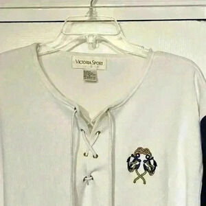 VICTORIA SPORT Vintage Sweater Top Sweatshirt Drawstring Striped Crest Classic