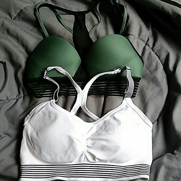 Two bras, green size XS, white size small. Both fit Small but also very stretchy material, only worn once!
