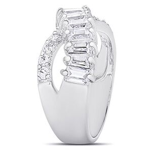 A strong stamp in every girl's jewelry wardrobe, this Crossover Infinity ring is perfect for everyday wear. Very versatile for a very Gorgeous flaunting look perfect for any occasion. Each ring features 4 mm x 2 mm 12 CZ baguette-cut and 8 CZ round-cut 2 mm sparkling cubic zirconia. Rhodium plated silver.