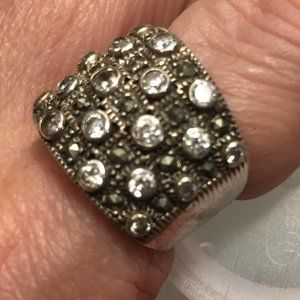 Sterling Marcasite CZ Wide Cigar Band Ring Sz 7.5 Checker