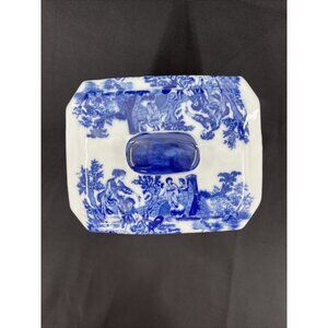 VICTORIA WARE IRONSTONE FLOW BLUE AND WHITE COOKIE JAR / BISCUIT JAR 9.5" TALL