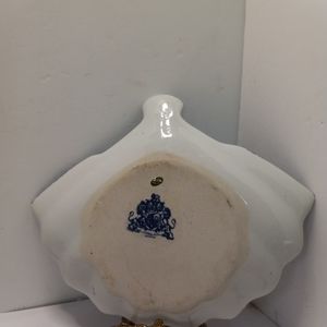 VICTORIA Ware Ironstone Ribbed Fan Plate Ruffled Edge Blue White Floral