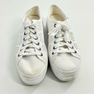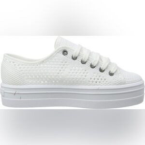 VICTORIA Women's White Crochet Barcelona Tricot Hi-Top Platform Sneakers US 6 EU 37. In very good pre-owned condition. Only signs of wear are on the bottom sole and edges. Very resortwear preppy tropical shoes
