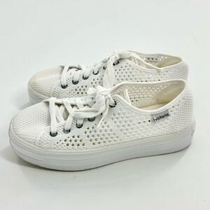 VICTORIA Women's White Crochet Barcelona Tricot Hi-Top Platform Sneakers US 6