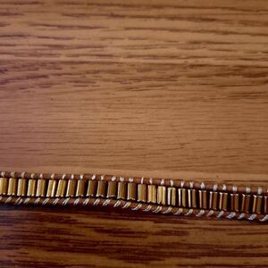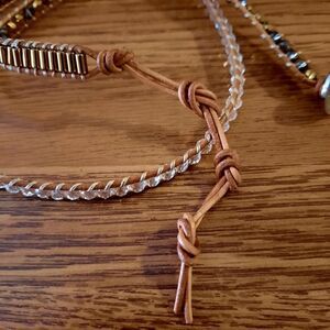 Special Features: Three Different Sections, Clear sparkly Beads, Faceted Brown Tone Beads, Gold Beads, Brown Leather, Button Closure with Three loops, for a perfect fit!