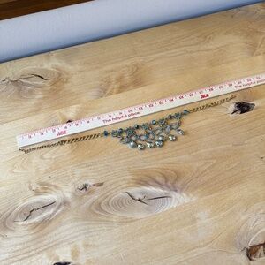 Victorian necklace, antique style, vintage inspired, intricate design, blue bead necklace, ornate detailing, romantic jewelry, heirloom style, statement necklace, elegant charm, old world beauty, boho vintage, timeless accessory, feminine classic, delicate craftsmanship, beaded jewelry, regal look, cottagecore style, art nouveau, Edwardian aesthetic, heritage style, formal occasion jewelry.