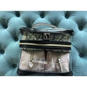VICTORIA'S SECRET 4-IN-1 TRAIN CASE SNAKE PRINT / PINK MAKEUP COSMETIC BAGS