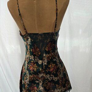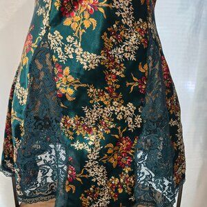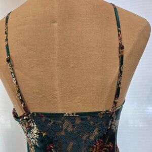 VICTORIA'S SECRET SATIN AND LACE CHEMISE, BABYDOLL. ADUSTABLE STRAPS. SIZE "P" EMERALD GREEN AND COLORFUL FLORAL DESIGN.NO RIPS, TEARS, OR STAINS. GOLD LABLE