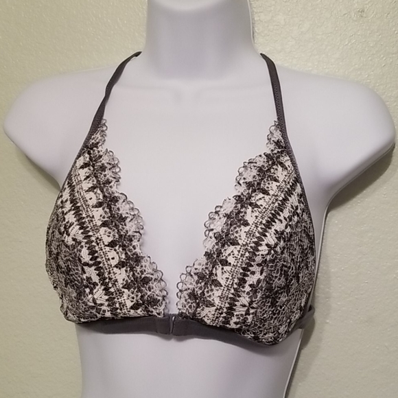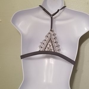Gray n cream lace hooks in front good condition