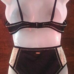 VICTORIA'S SECRET BIKINI Swim Black & Crochet Size 34B Top & Large Bottom
