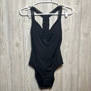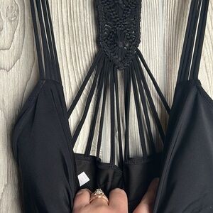 VICTORIA'S SECRET BLACK ZADAR MACRAME STRAPPY ONE PIECE SWIMSUIT SZ MED BOHO