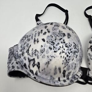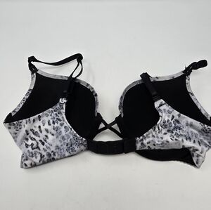 VICTORIA'S SECRET BOMBSHELL PLUNGE BRA SILVER BLACK ANIMAL PRINT WOMEN 32C SEXY