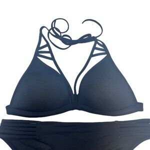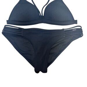 VICTORIA'S SECRET Bikini Medium Black Strappy Padded Top & Cheeky Bottom 2 Piece