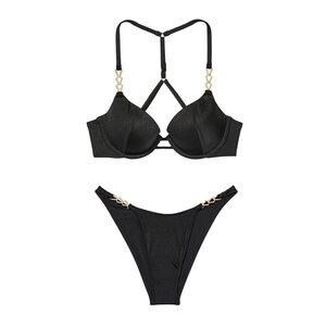VICTORIA’S SECRET Black Bikini Set Top Bottoms Underwire Push Up 34D / Medium