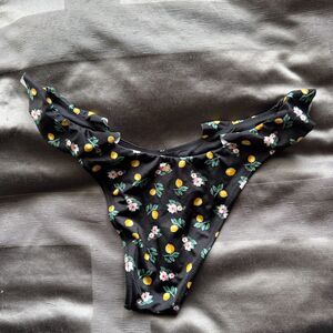 VICTORIA'S SECRET Black Floral Lemon Ruffle Swim Bikini Bottom Size M Medium