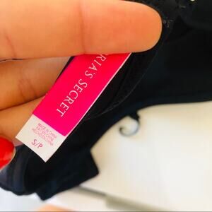 VICTORIAS SECRET Black Fringe Halter Tie Top Bikini Cheeky Bottom Swimsuit S
