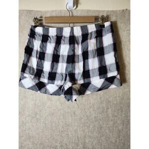 VICTORIA'S SECRET Black Gray Plaid Gold Thread Shorts Pajama Set SZ M