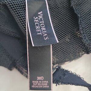 VICTORIA'S SECRET Black Mesh Pink Lace Push Up Bra Intimate Slip Dress Teddy 38D