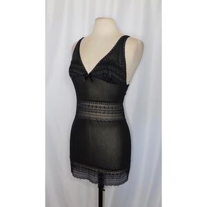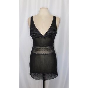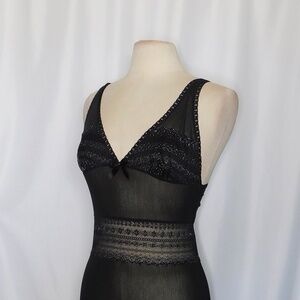 VICTORIA’S SECRET Black Metallic Silver Lace Chemise Gown Lingerie Sleep Large