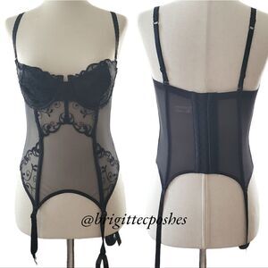 VICTORIA'S SECRET Black See-through Lace Embroidered Teddy with Garters