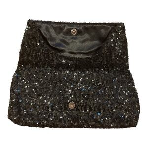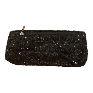 This elegant black clutch from Victoria's Secret features a dazzling sequined design, perfect for special occasions. The gold-toned hardware adds a touch of sophistication, making it an ideal accessory for evening wear. Its sleek, elongated shape ensures a chic and timeless look.