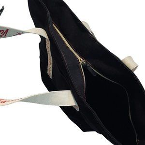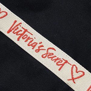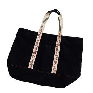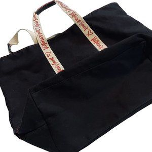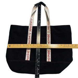 VICTORIA'S SECRET Black With Red Logo Canvas Weekender Tote Bag zips closed