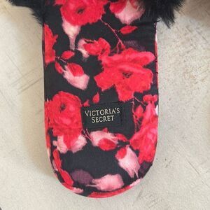 VICTORIAS SECRET Black Floral Slippers NWOT
