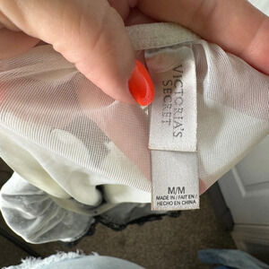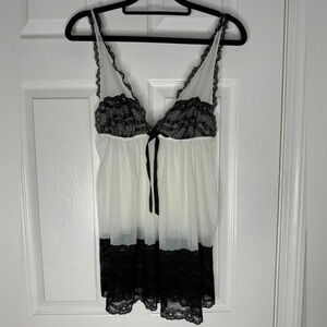VICTORIAS SECRET Black/White Lace Teddy Sheer Babydoll Size M