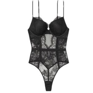 victorias secret, bombshell, teddy, lace, bodysuit, lingerie, sheer, intimate, romantic, sexy, elegant, boudoir, sultry, chic, underwire, black, night out, statement, daring, feminine