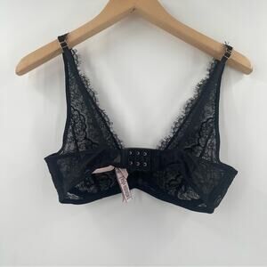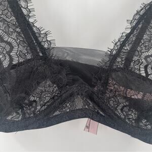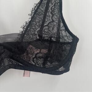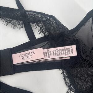 VICTORIA’S SECRET Bra Size 34C Black Lace Dream Angels Plunge Semi Lined Sexy