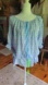 Sweet peasant style blue and white patterned blouse with a vibrant green drawstring. Can be worn on or off the shoulder. Luxuriously soft and lightweight.