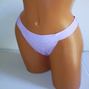 VICTORIA'S SECRET Cotton Tanga String Bikini Panty Purple Lilac Dot Logo Waist M