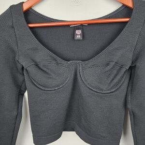 VICTORIA'S SECRET Crop Top Underwire Long Sleeve Black Womens Size S Going Out