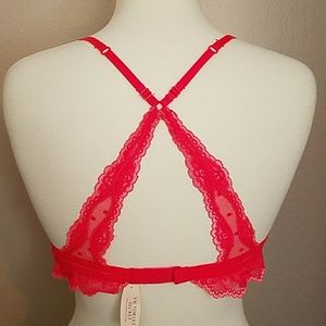 The Victoria's Secret Dream Angels Angels Crush Racerback Sheer Bralette. 😍 SWEET and SIMPLE is this pretty little polka dot bralette featuring beautiful lace detailing, a plunging neckline and sexy racerback❕ With adjustable straps, no padding and no underwire in your choice of either black/pink🖤💕 or ignited red❤ or get both...you can't go wrong❗