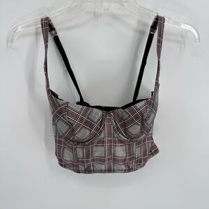 VICTORIA’S SECRET DREAM ANGELS LIGHTLY LINED LONG LINE SATIN BRA PLAID Size 34C