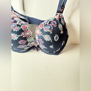Elegant floral lace trim bra in a beautiful navy and pink design. Perfect for comfort and style.