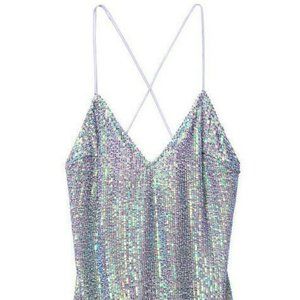 Dream Angel Collection ~ NEW With Tag ~ Super Sexy ~ The slip that doubles as a dress for Daytime Night Time or Playtime ~ Classy Rose Gold or Blue/Green ~ Shiny sequins all over with glamorous styling in all the right places ~ Deep V neck front with an open deep V back will have all heads turning ~ Attached inner silky mesh lining ~ Adjustable spaghetti style straps cross over in back. INDICATE COLOR CHOICE :-)