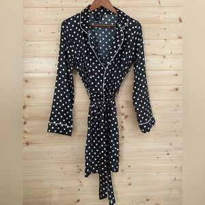 VICTORIA’S SECRET Elegant Women’s S/P Black & White Polka Dot Satin-Style Robe