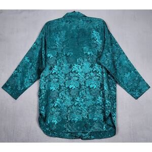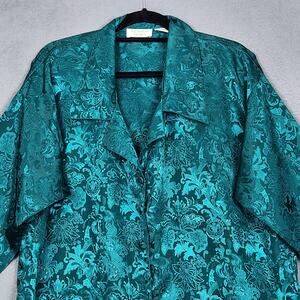 VICTORIAS SECRET Gold Label Top Womens M/L Green Floral Button Up Collared