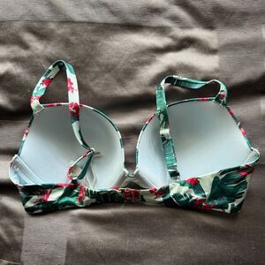 VICTORIA'S SECRET Green Red Floral Swim Push Up Bikini Top Size 38D
