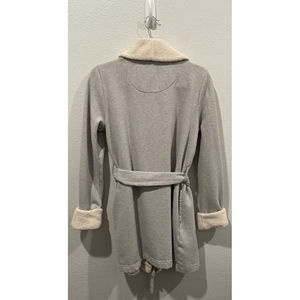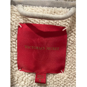 VICTORIA'S SECRET Grey Cream Shawl Collared Robe. Size S Excellent pre-owned condition Measurements aprox: Length 32" Pit to Pit 19" Shoulder to Wrist 24" Shoulder 14" 60% COTTON 40% POLYESTER FAUX FUR 100% POLYESTER